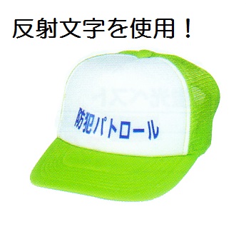 アメリカンキャップ(防犯パトロール) 反射文字入り 蛍光緑 帽子